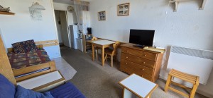 Composé d'une entrée avec placard, d'une SDB avec baignoire et WC, d'une cuisine ouverte sur le séjour, d'un séjour avec balcon et d'un casier à skis au SS de la résidence.